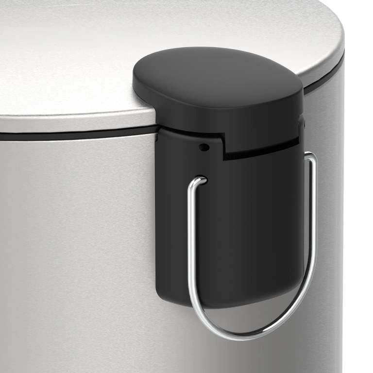 Metalowy kosz pedałowy KP5-S-S to kompaktowe i dopracowane rozwiązanie, które łączy minimalistyczną formę z maksymalną wygodą użytkowania. Wykonany z trwałej stali, zachowuje estetyczny wygląd nawet przy intensywnym użytkowaniu, a jego niewielka, ok. 5-litrowa pojemność sprawia, że idealnie odnajduje się w łazienkach, biurach czy niewielkich przestrzeniach.
